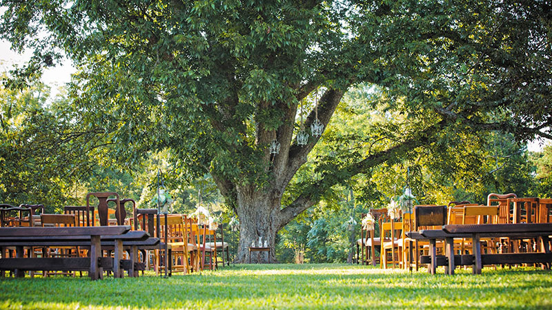 Emily always had her heart set on getting married under a big, beautiful tree. So we found one! We'll be exchanging vows beneath this ancient pecan tree at Vinewood. Known as "The Wedding Tree," it sits in front of acres of rolling pastures behind the historic plantation home.